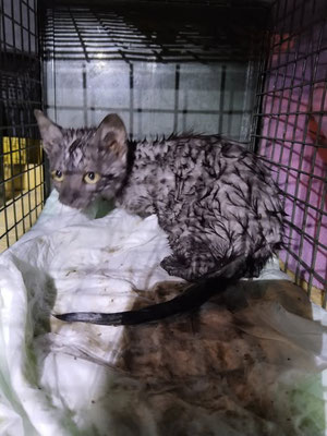Traude - geboren Ende 2019, kastriert, entwurmt und entfloht, lässt sich beim Fressen streicheln, knabbert an den Zehen, hält ansonsten Abstand zum Menschen