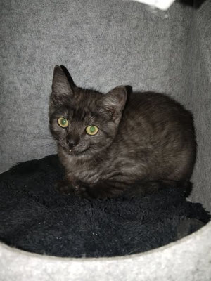 Pebbels hatte neurologische FIP. Ist Fremden gegenüber sehr ängstlich und braucht viel Zeit. Lässt sich bei mir nur in der Quarantänebox streicheln. Pebbels braucht bei Kratzbäumen und in der restlichen Wohnung viele Zwischenbretter oder Kratzbretter um überall rauf zu kommen. Sie hat leichte neurologische Defizite seit der FIP. Kastriert und geimpft.